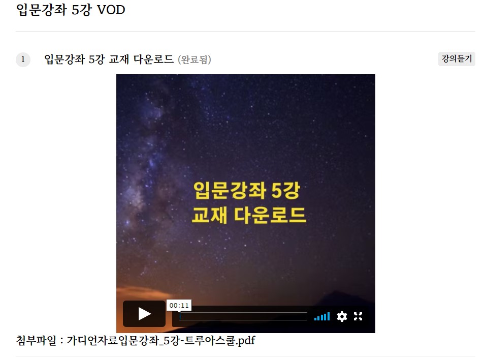 입문강좌 8강 (10/23 강의) VOD 업로드 완료 및 Live강좌 종료 안내