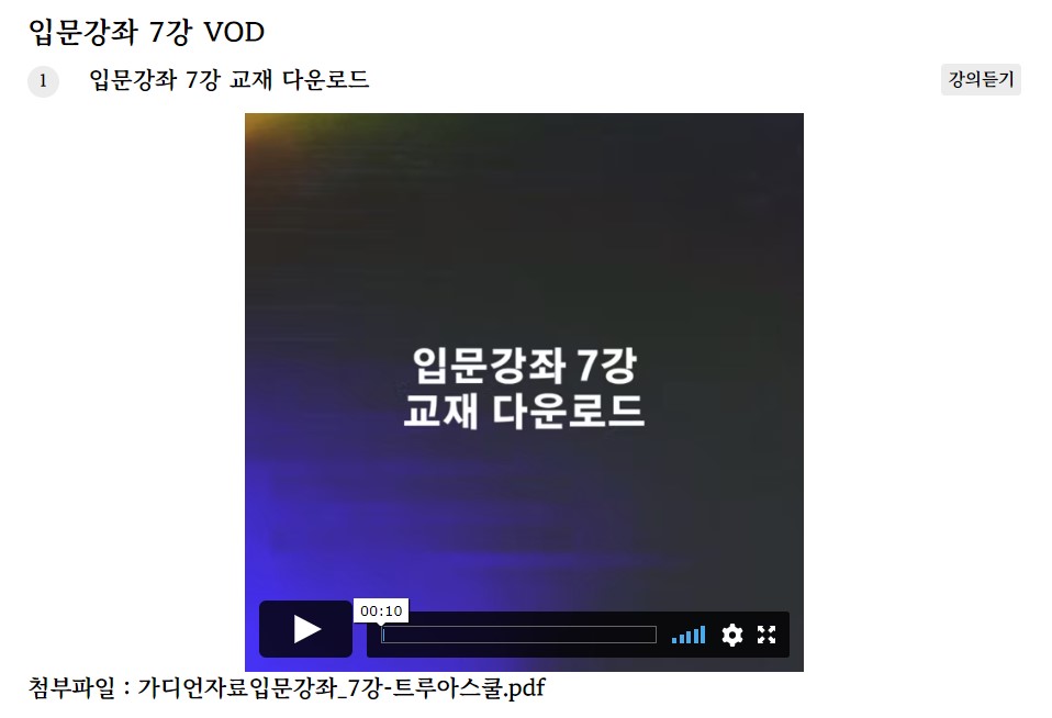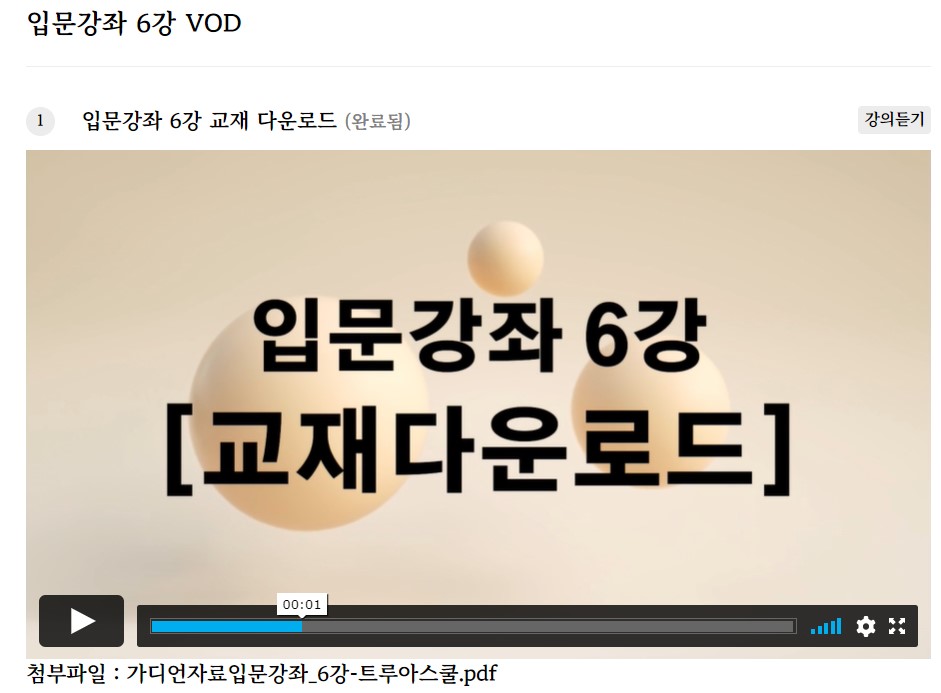 입문강좌 6강 VOD 업로드 완료 (Part 3. 포함)